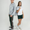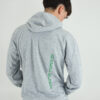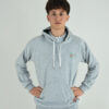 Buzo color gris melange en rustico sin friza, con logo en el frente y bordado en la espalda. Exclusivo secundaria.