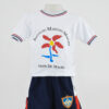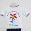 Remera blanca en tela pique, cuello redondo con estampado en el frente.