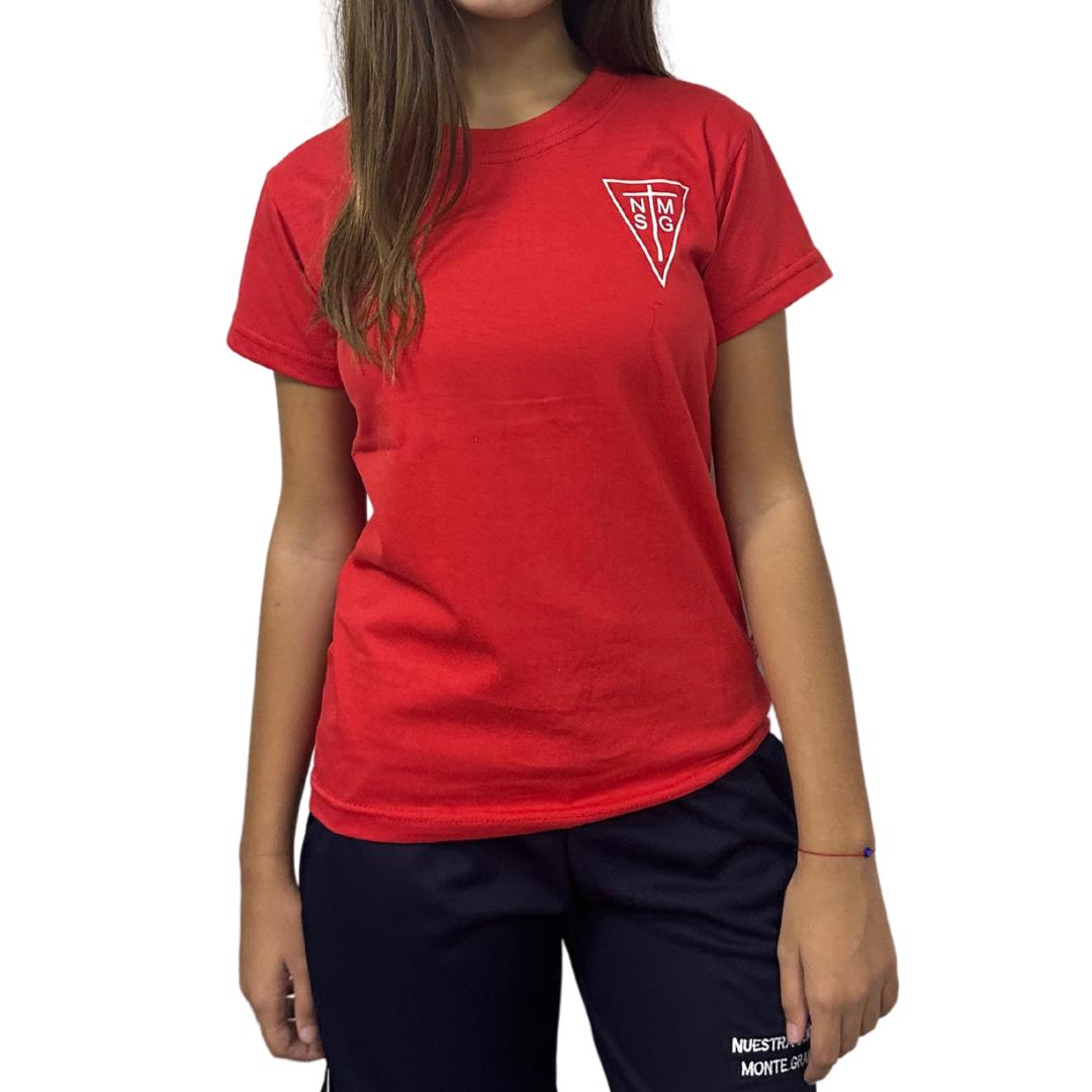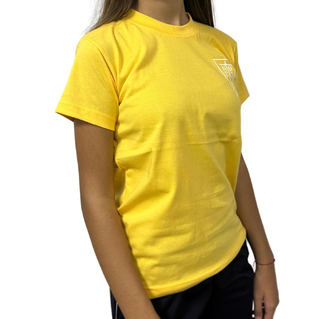 Remera de colores amarillo, rojo y verde de algodón para primaria y secundaria.